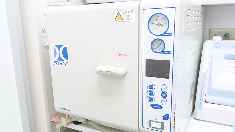 世界で最も厳しいと言われる滅菌基準に準じた、ヨーロッパ規格クラスBの滅菌器を導入しています。治療に使用する器具を、高圧蒸気で滅菌します。