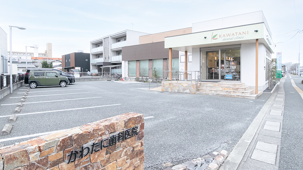 こちらが医院の外観です。駐車場は12台分完備しています。