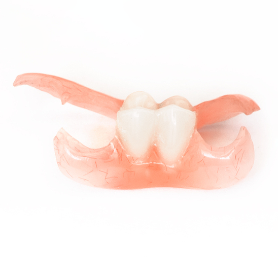 金属のクラスプ(入れ歯の留め具)を使用しない部分入れ歯です。入れ歯と気づかれにくく、自然な見た目を実現できます。弾性のある素材で、残った歯への負担も少ないのが特徴です。