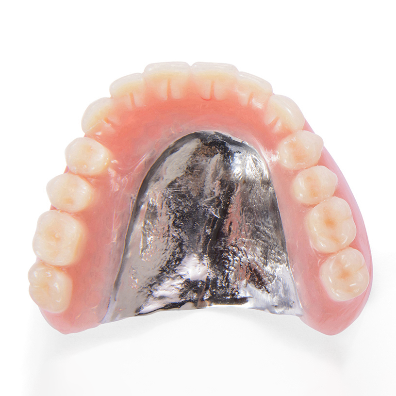 金属床義歯は、入れ歯の土台となる床(しょう:歯茎に接する部分)が金属でできている入れ歯です。床が薄いため装着時の違和感が少なく、食べ物の温度を感じやすい特徴があります。